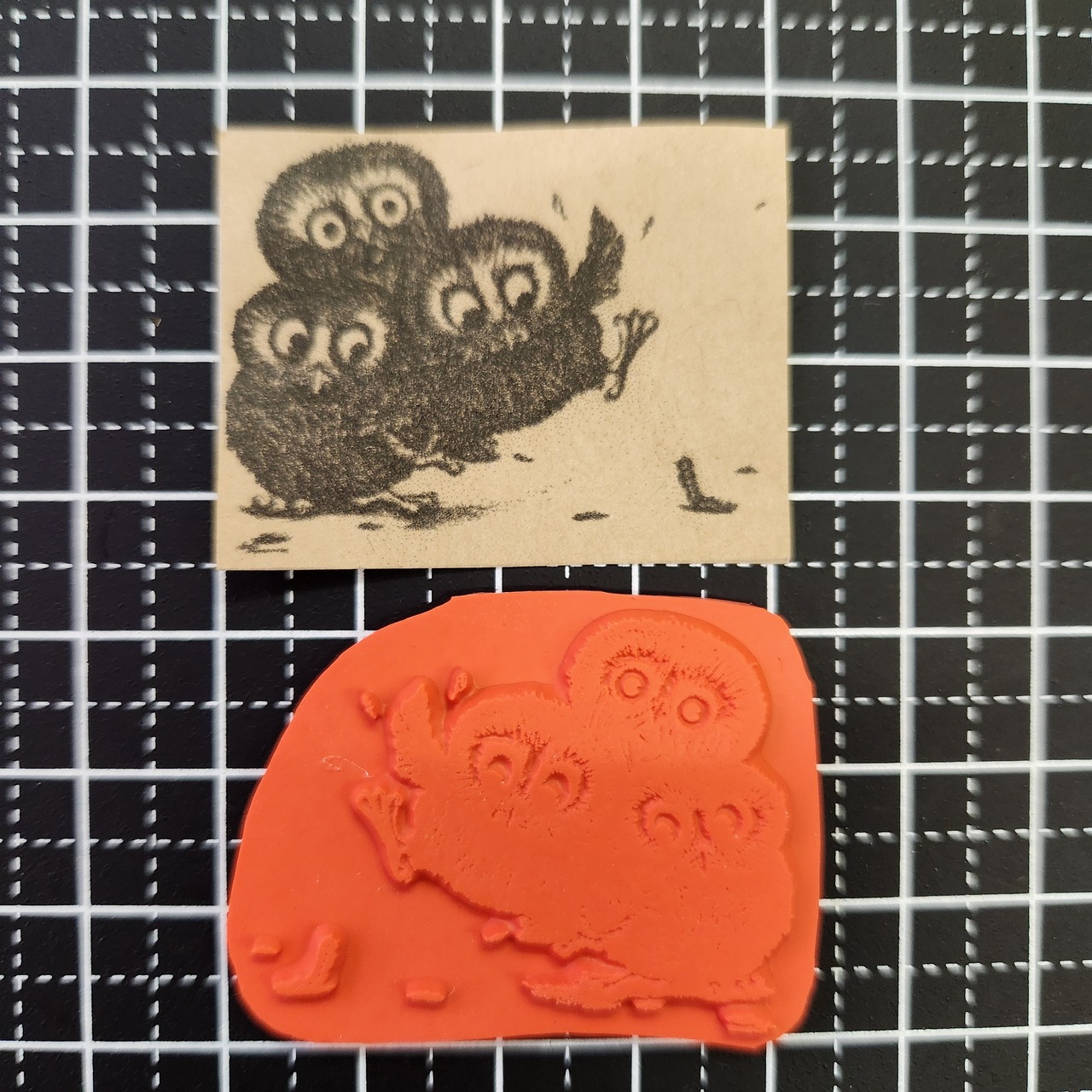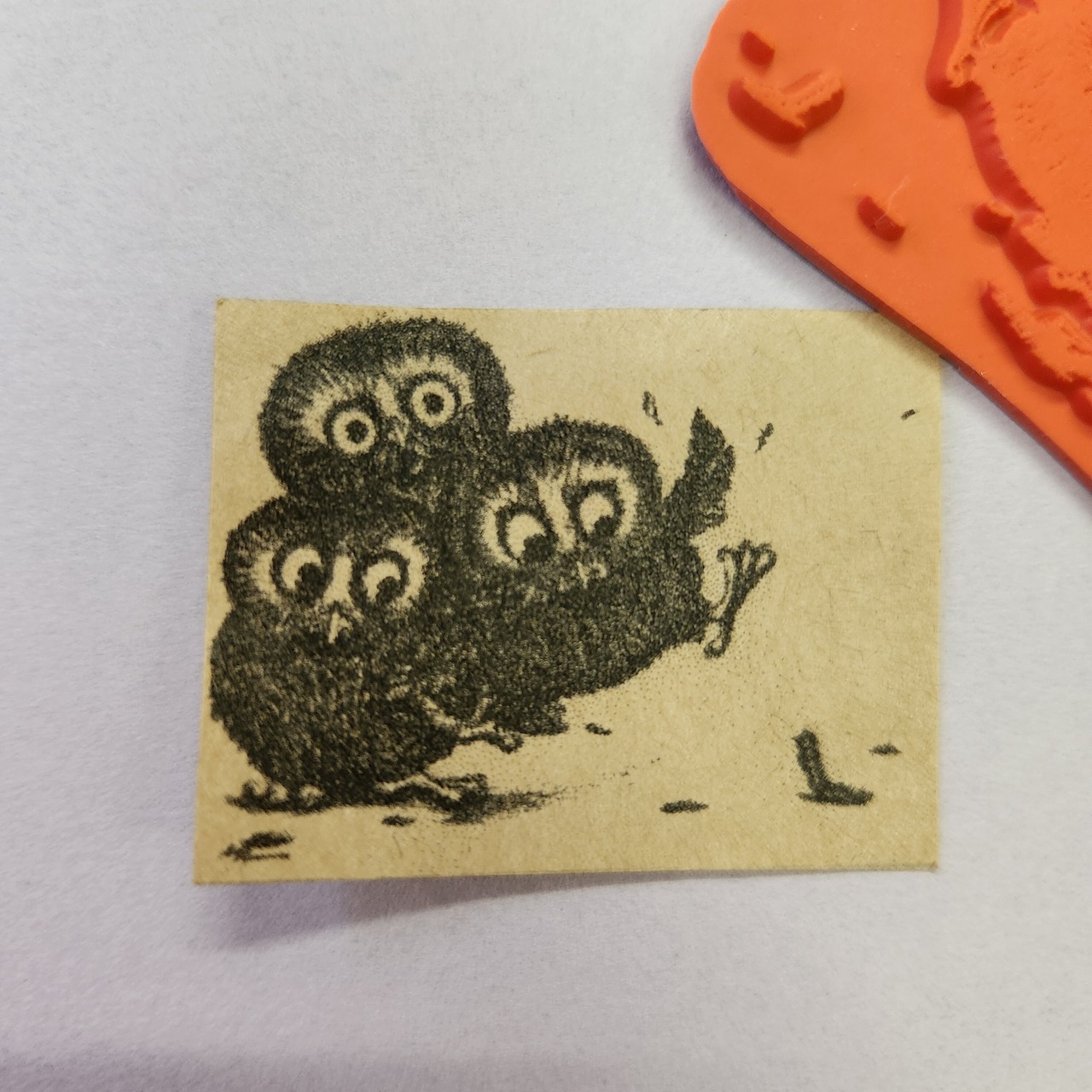 ラバースタンプ 毛虫に驚くフクロウ